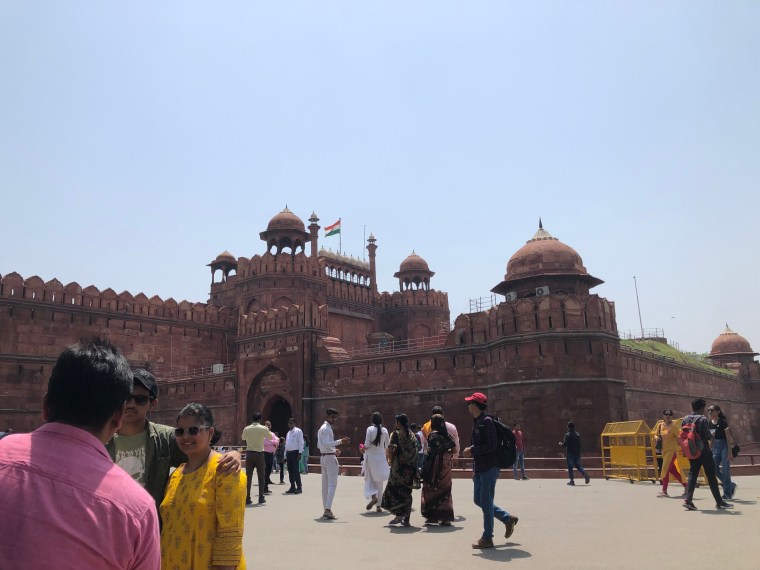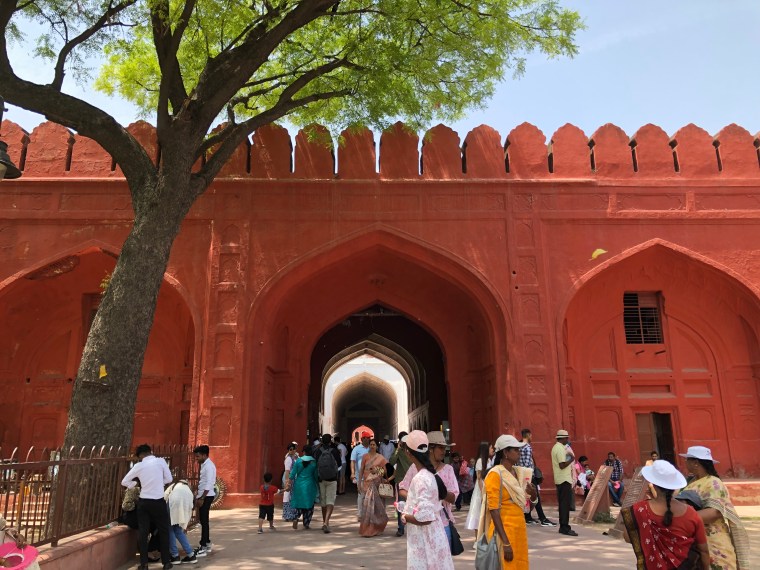 On a Sunday morning, we had a great drive from Noida to Delhi. It was good seeing Delhi from the aircraft when I flew in, but I know it would be a lot bigger than I anticipated once we got inside the city. The topic of a lot of the discussion a lot of the time as how India has overtaken China as the country with the most population in the world. Going into any city – it became more urban, busy and crowded. It was fabulous to see the buildings, the street traders, the various types of transport and the people. It was Sunday and was not too busy in parts but as we got closer to Red Fort Delhi, it was busy as it was a public holiday weekend and lots of Indians were sightseeing too. Red Fort in Delhi was on a large site and the building was so impressive. It was great to see the colours but also the white marble of the some of the other buildings in contrast. It was also reminded of some of the items I saw in the British Library’s Asian Collection on the Red Fort. We spent a couple of hours walking around and you probably need a whole day to take in all the surrounding gardens, but we were on a tight schedule.